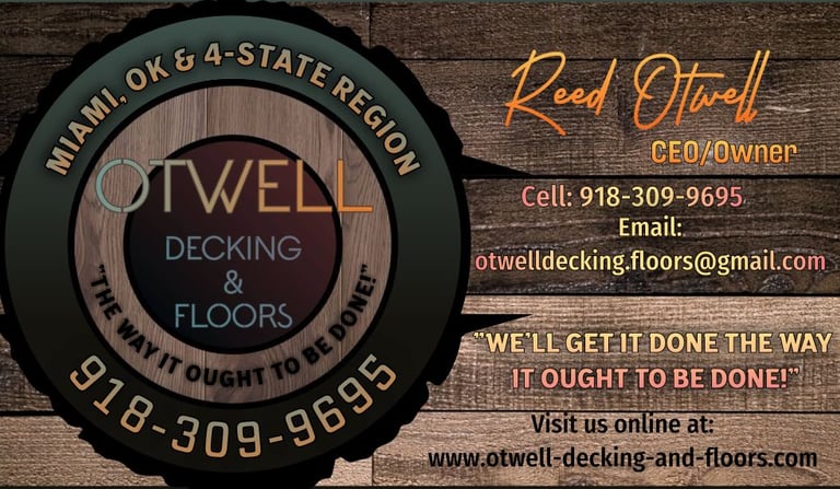 Otwell Decking & Floors started out as a brainstorming session between myself, Reed Otwell, and my close friend, Chris Bailey. Together we have a combined total of over 25 years of experience. Chris is a General Contractor for his own business, Bailey's Remodel and Renovation LLC, as well as an active partner in Otwell Decking in Floors. I work for Chris full time as a sub-contractor and have been blessed enough to be able to start my own business under his mentorship and guidance. We are backed by a crew of professional, Christian craftsmen who work with integrity and above all else value the opportunity to serve.